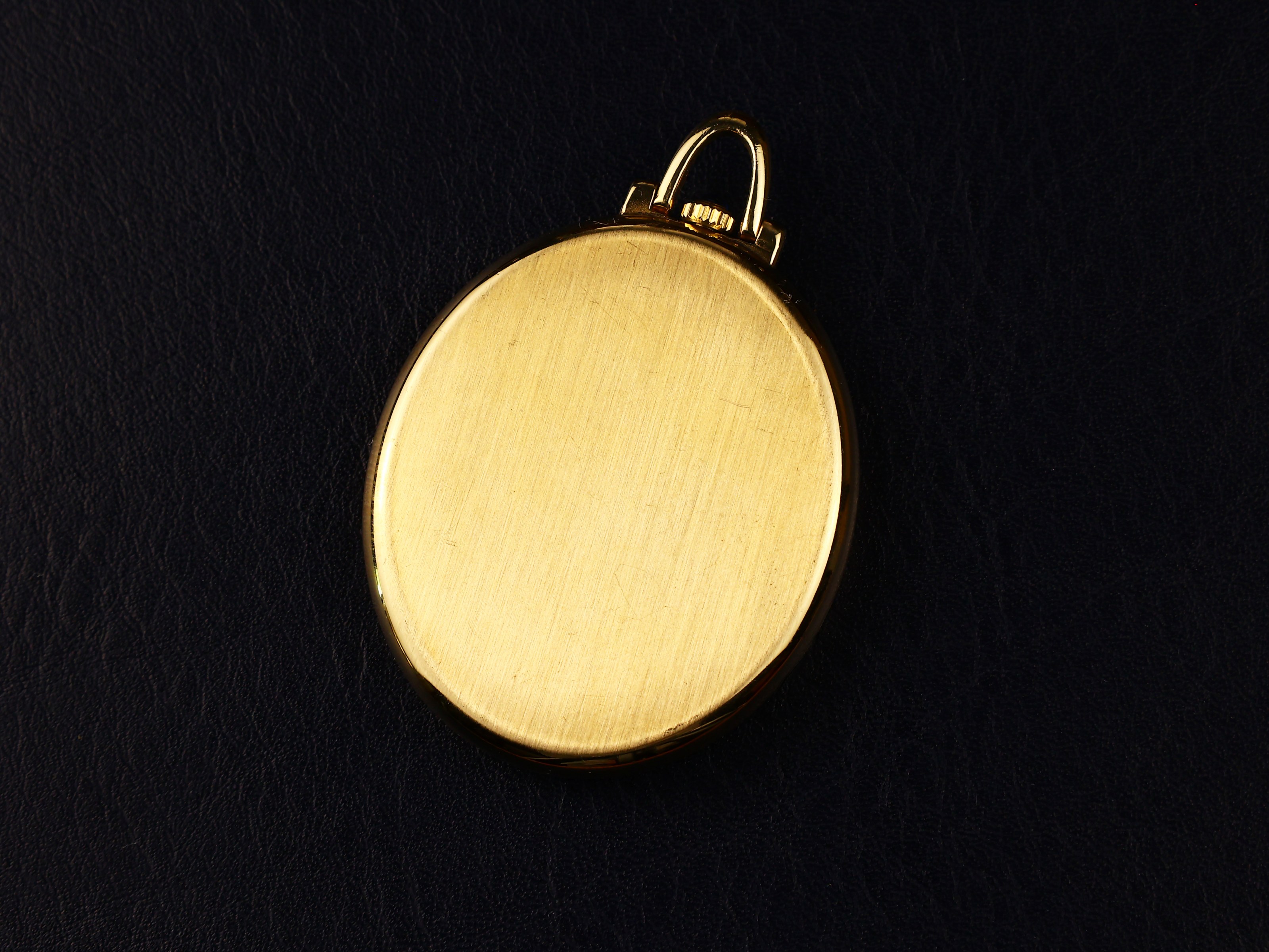 BemerkungenDiese seltene Jaeger-LeCoultre „Vogue“ Taschenuhr, mit der Referenz 9047.21, wurde im Jahr 1971 gefertigt und besticht durch ihr reich verziertes Zifferblatt im ornamentalen Dekor. Das 45 mm Gehäuse besteht aus massivem 18-karätigem Gelbgold und vermittelt zusammen mit dem eleganten Design die Ästhetik der frühen 1970er Jahre.