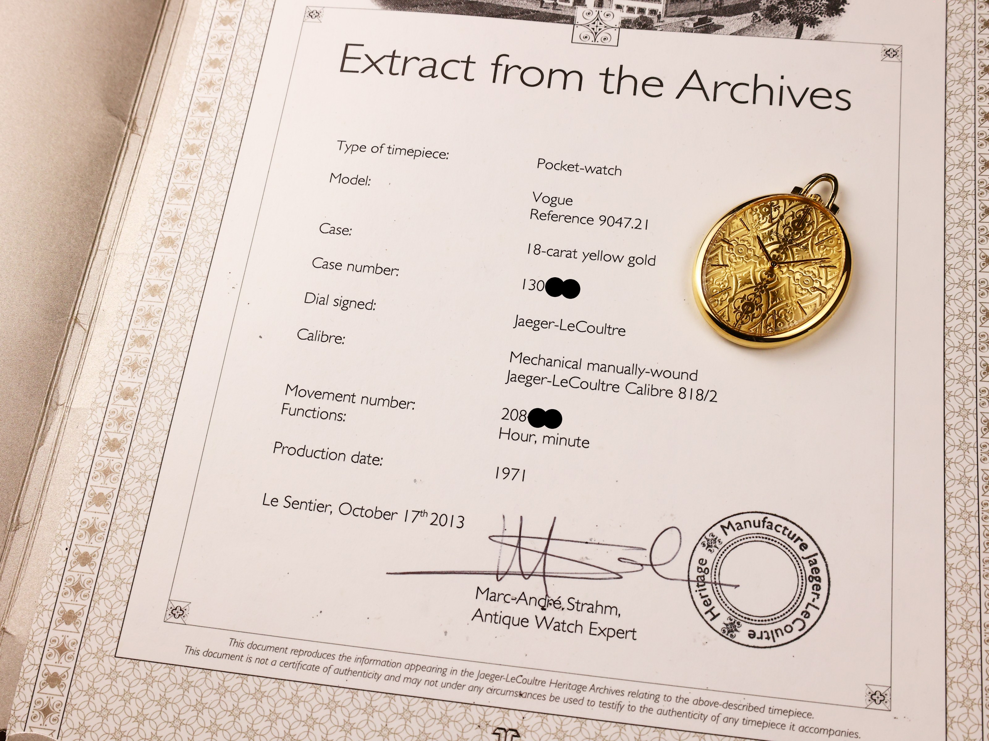 PapiereArchivauszug von Jaeger Le-Coultre aus 2013