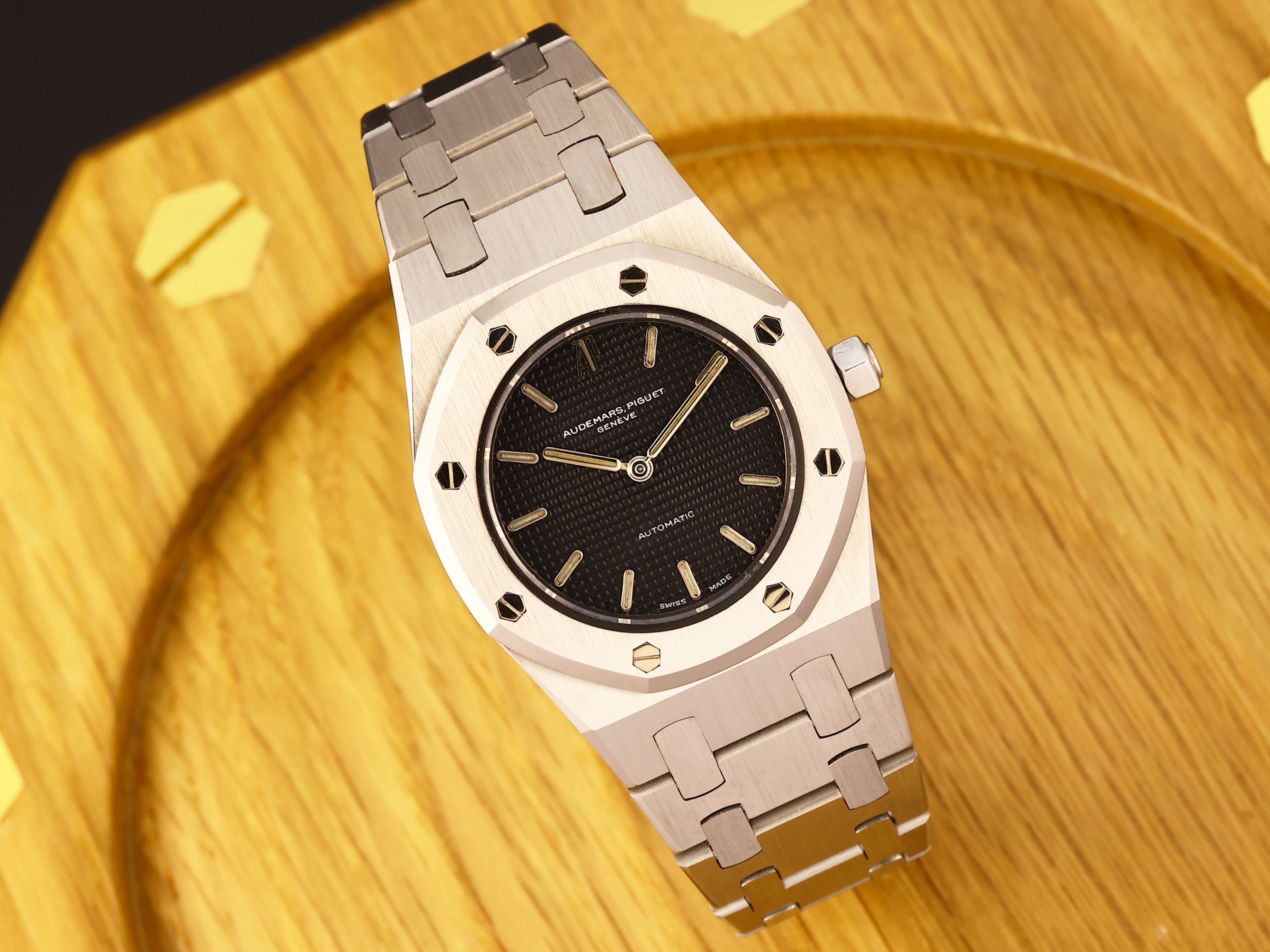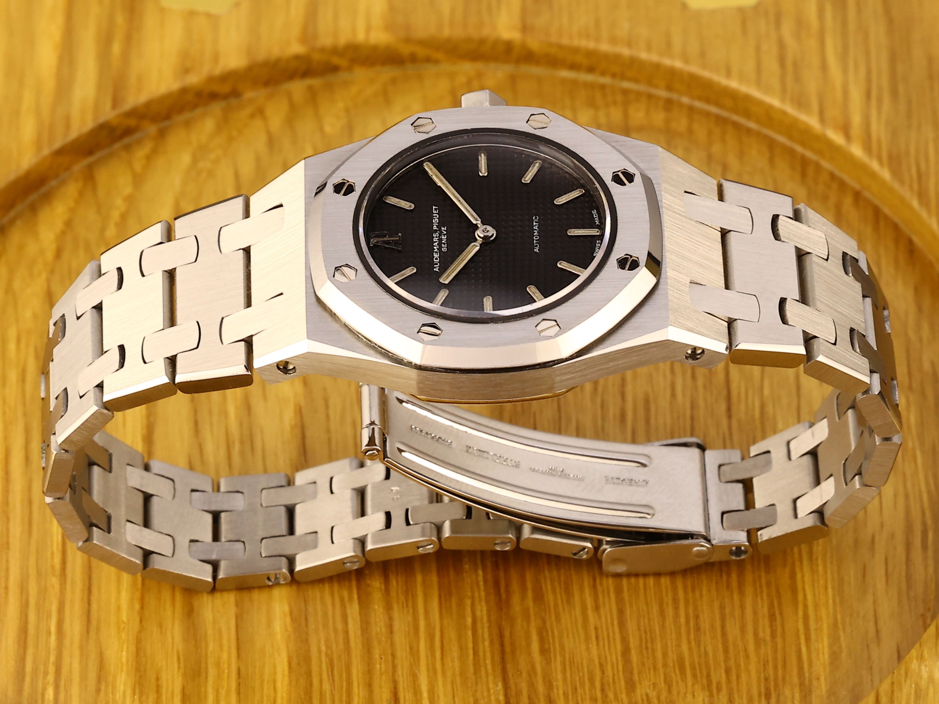Auch ohne originale Box und Papiere ist die Uhr sauber dokumentiert: Ein Archivauszug von 2021 bestätigt die Daten und unterstreicht die Authentizität. Insgesamt handelt es sich um ein ehrliches, technisch einwandfreies und optisch sehr überzeugendes Sammlerstück innerhalb der frühen Royal Oak Linie.