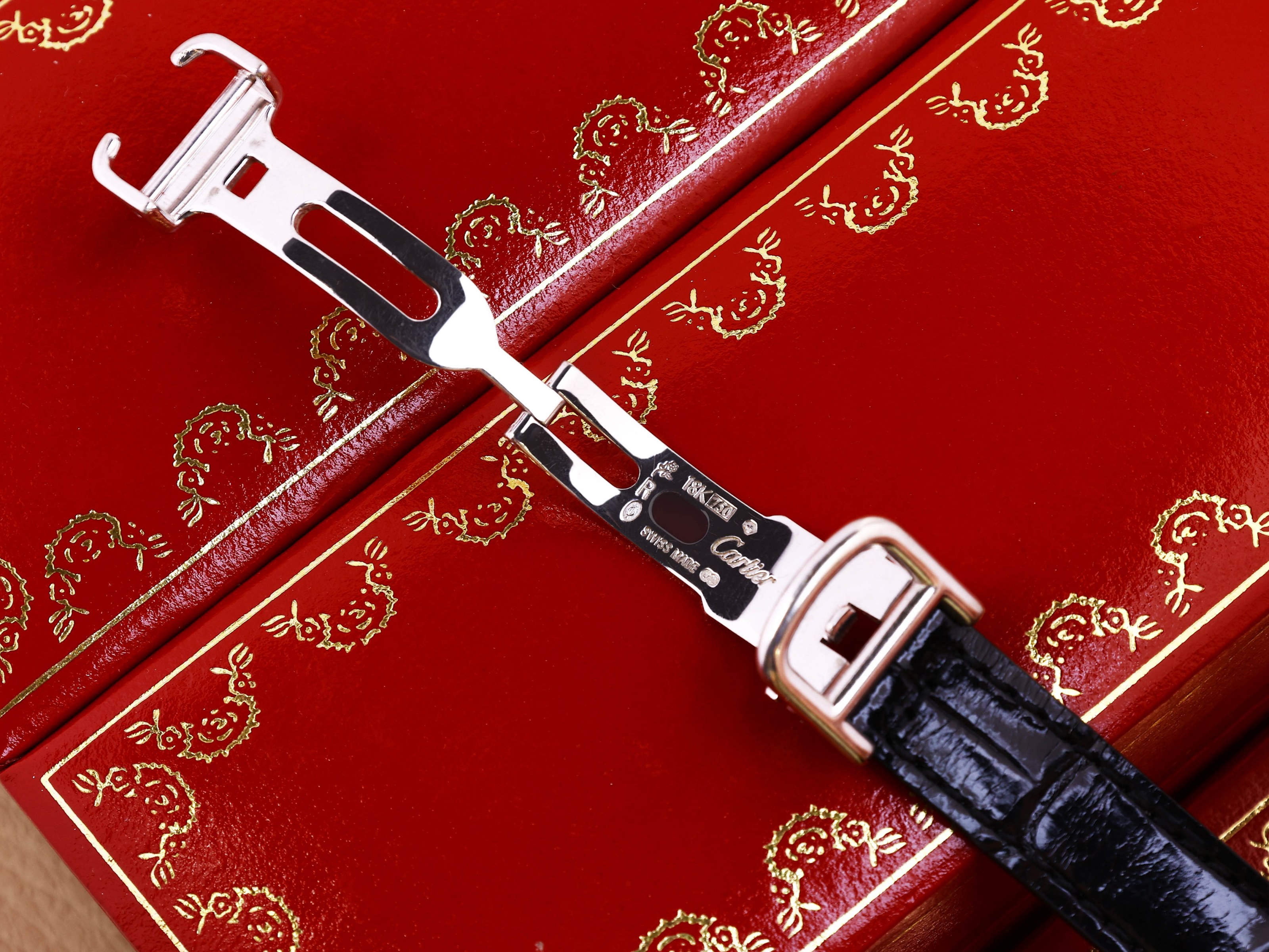 This example impresses not only with its well-preserved condition but also with its original Cartier folding clasp - a detail that has rarely survived on this model. It is paired with a new original Cartier leather strap, giving the watch a fresh and refined overall appearance.
