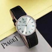 Additional Informations: We are offering a Piaget Ref. 90239 in 18k white gold - a rare NOS piece from the 1970s, brand-new and completely unworn. It is powered by a slim hand-wound movement and reflects the classic Calatrava design with a beaded bezel.