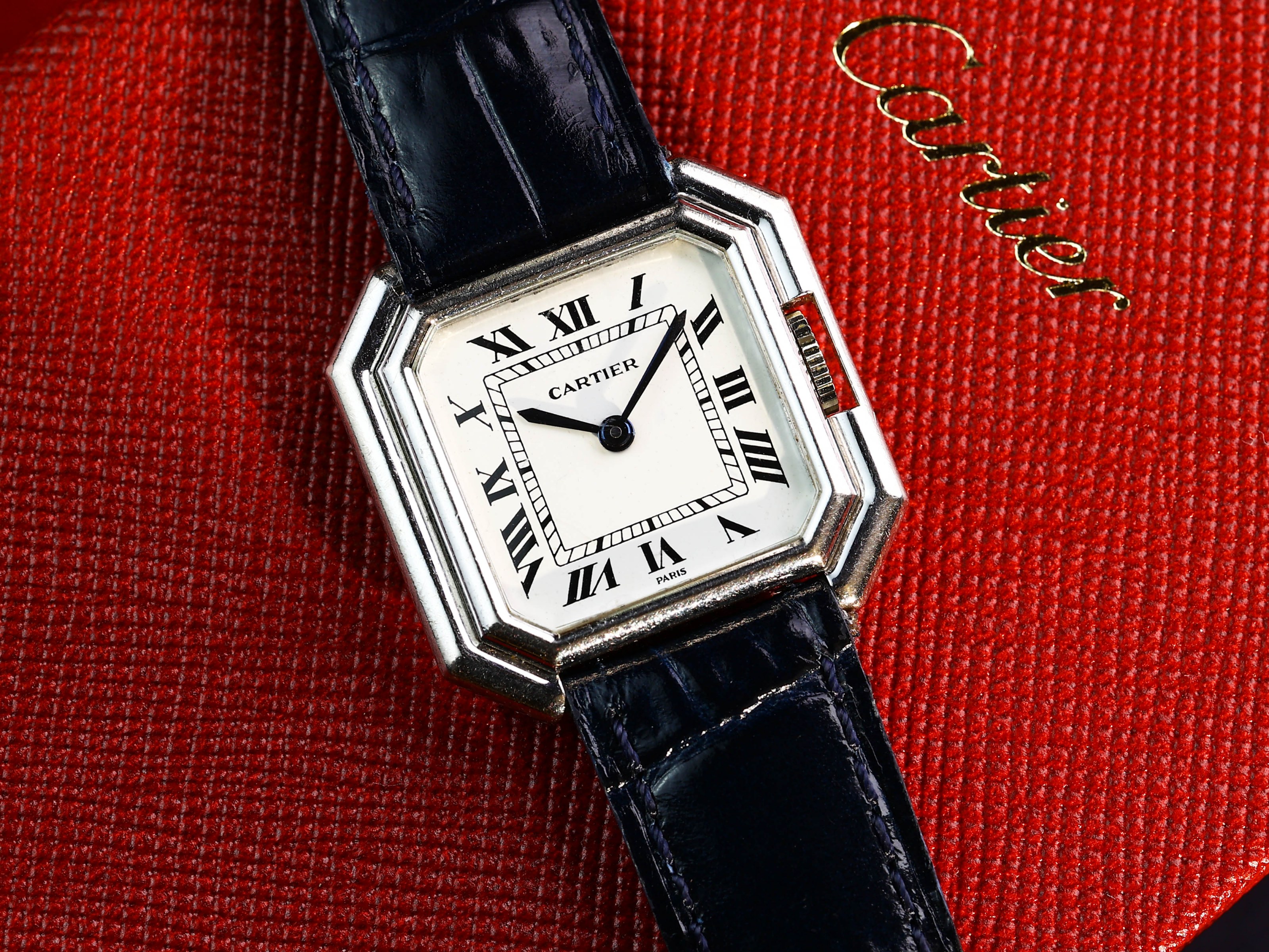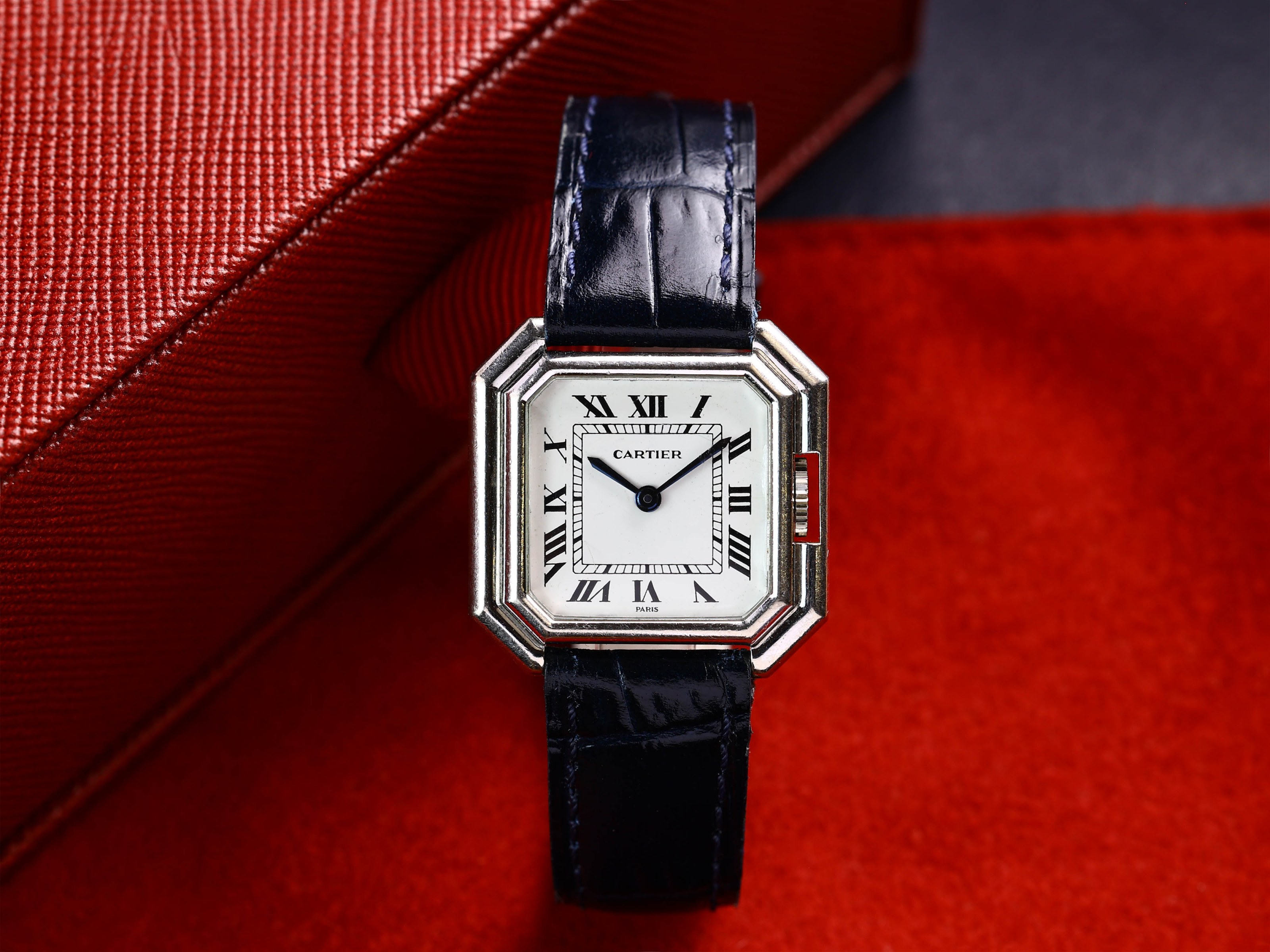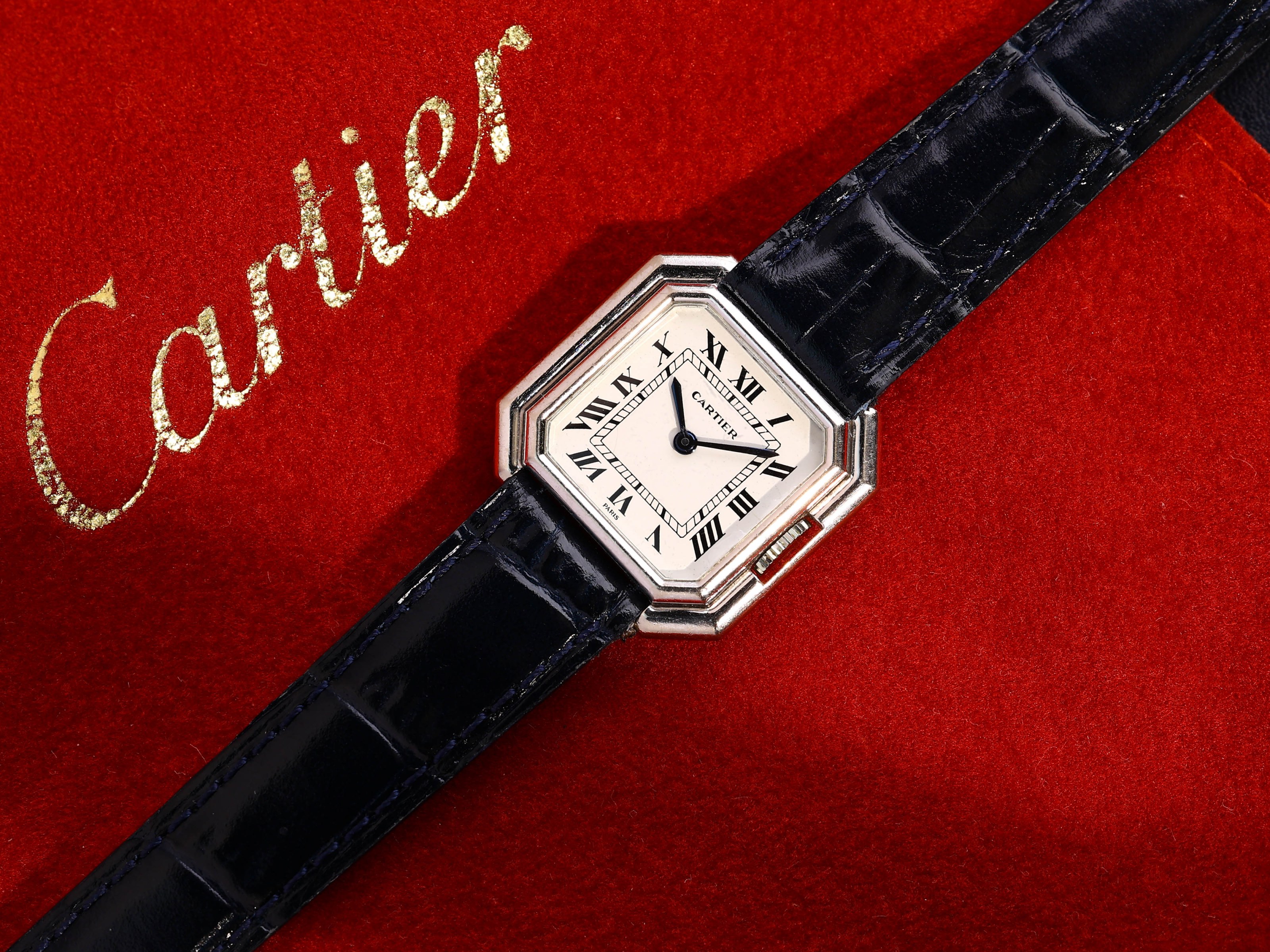 The watch remains unpolished and shows only light, typical signs of wear, preserving its authentic vintage character. Inside ticks a reliable manual-wind movement, characteristic of Cartier’s elegant watchmaking of that era.